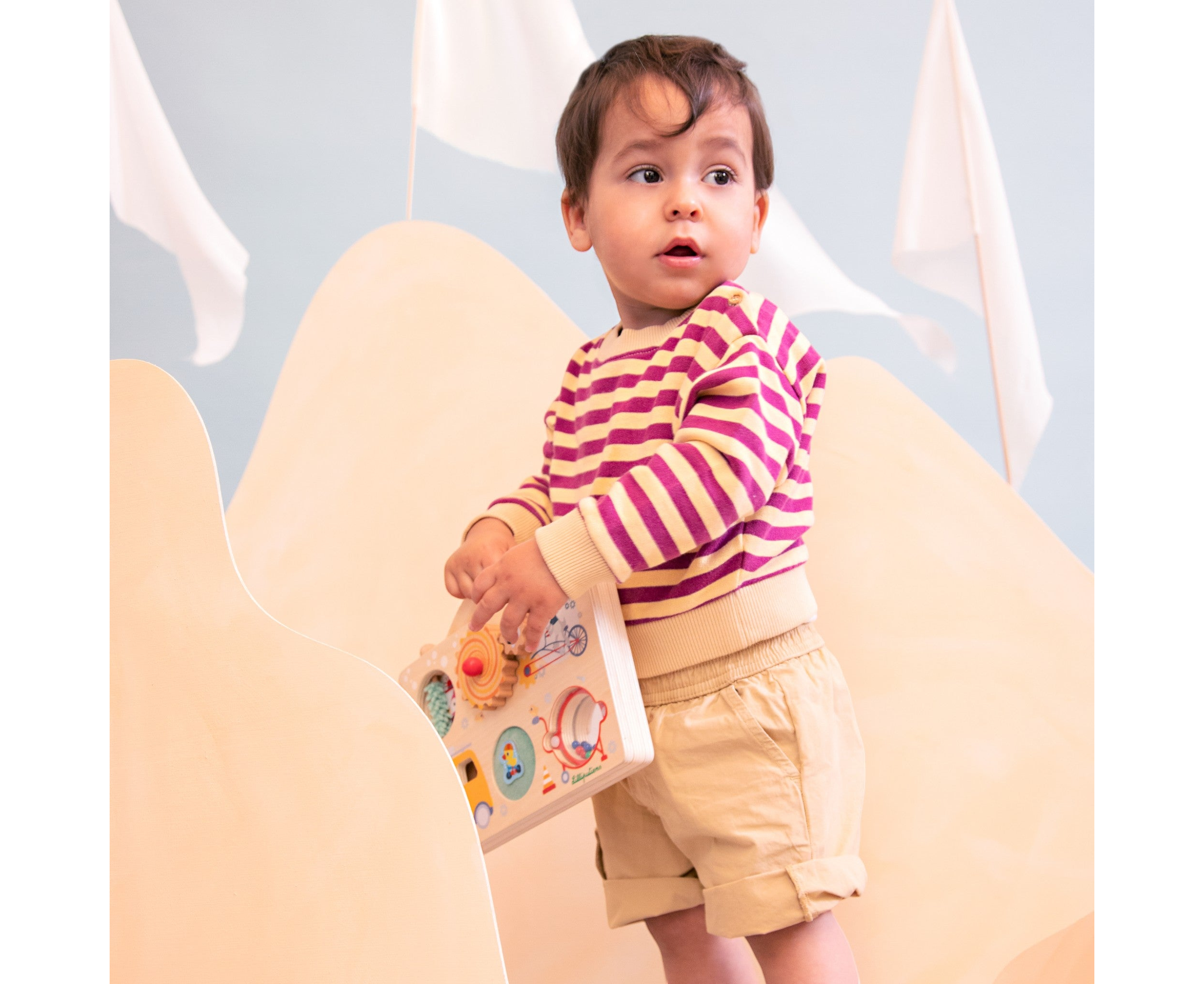 Γυρίστε, σπρώξτε, τραβήξτε, κουνήστε και παρατηρήστε τις δραστηριότητες αυτού του υπέροχου σετ παιχνιδιού. Τέλεια σχεδιασμένο για να ενισχύει τις λεπτές κινητικές δεξιότητες, αυτό το φορητό παιχνίδι υπόσχεται ατελείωτη διασκέδαση και μάθηση όπου κι αν πάτε. Ιδανικό για μικρούς εξερευνητές εν κινήσει, αυτό το παιχνίδι είναι η πύλη του παιδιού σας προς τη μάθηση και τη χαρά.
