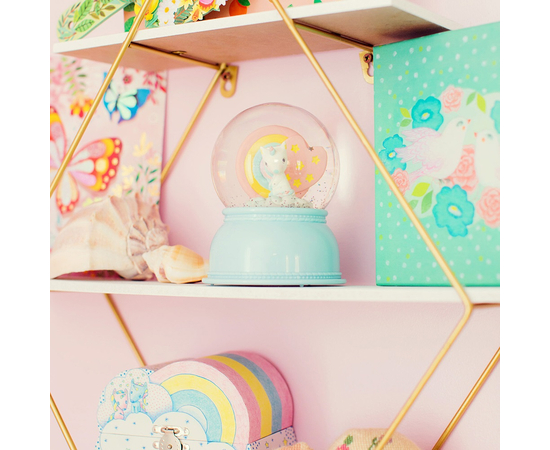 Η εταιρεία Djeco δημιούργησε για εσάς το ονειρεμένο φωτιστικό χιονόμπαλα! Ο μονόκερος χαρίζει στις μικρές μας πριγκίπισσες μια όμορφη διακόσμηση στο δωμάτιο τους και στιγμές χαλάρωσης για τον βραδινό ύπνο με τον ελαφρύ φωτισμό της. Δε χρειάζεται να την κουνήσετε, καθώς ο μηχανισμός που διαθέτει στροβιλίζει τις αστραφτερές νιφάδες! Ενεργοποιήστε τον χρονοδιακόπτη και το φωτιστικό κλείνει μετά από 45 λεπτά. Διαστάσεις 11 x 11 x 14 εκ. Κατάλληλο από 0 έως 12 ετών.