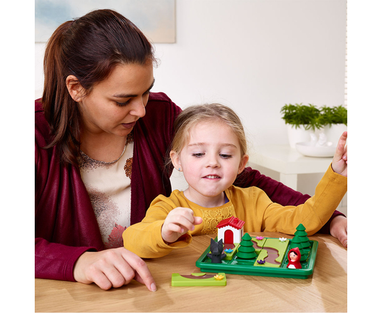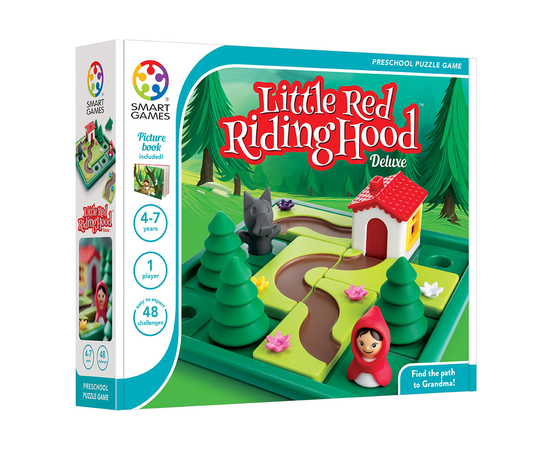 Δημιουργήστε το μονοπάτι έτσι ώστε η κοκκινοσκουφίτσα να οδηγηθεί στο σπίτι της γιαγιάς της χωρίς να κινδυνεύει από τον κακό λύκο! Η εταιρεία SmartGames παρουσιάζει μια σειρά από παιχνίδια λογικής και ενδυνάμωσης IQ. Με τη βοήθεια του παιχνιδιού ¨κοκκινοσκουφίτσα¨, εμπνευσμένο από το γνωστό παραμύθι, αναπτύσσονται η λογική σκέψη, η στρατηγική και η οπτική και χωρική αντίληψη. Διαθέτει 48 διαφορετικές προκλήσεις σε τρία επίπεδα δυσκολίας, βιβλίο οδηγιών και είναι κατάλληλο για παιδιά ηλικίας 4 έως 7 ετών. Παίκτες: 1+.