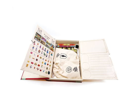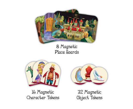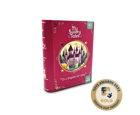 Ταξιδέψτε στον υπέροχο κόσμο της έμπνευσης και αφήγησης των παραμυθιών με το παιχνίδι «SvooryTales»! Ένα πρωτότυπο και άκρως δημιουργικό παιχνίδι που ακολουθεί τη σχεδιαστική δομή ενός παραδοσιακού vintage βιβλίου. Στο εσωτερικό του υπάρχουν 3 σελίδες οι οποίες αντιστοιχούν στα 3 στάδια αφήγησης: Εισαγωγή, Προϊδέαση-Διήγηση και Λύση. Στη συσκευασία περιλαμβάνονται μαγνήτες που μπορούν να επιλεγούν τυχαία και να τοποθετηθούν σε αυτές τις σελίδες. Με βάση τα εικονιζόμενα στοιχεία ο αφηγητής δημιουργεί διάφορες ιστορίες, η καθεμία με τη δική της ξεχωριστή πλοκή ή με αμέτρητες εναλλακτικές εκδοχές! Με αυτόν τον τρόπο, καλλιεργείται η προσδοκία στους μικρούς ακροατές να περιμένουν κάτι μαγικό να συμβεί, που σίγουρα δεν θα είναι ποτέ το ίδιο καθώς οι δυνατότητες της ιστορίας είναι άπειρες! Είναι ιδανικό για παιδιά άνω των 3 ετών ενώ ταυτόχρονα αποτελεί ένα πολύ χρήσιμο εργαλείο για γονείς, εκπαιδευτικούς, συμβούλους και λογοθεραπευτές. Εξαιρετικά πρωτότυπο, κατασκευασμένο από ασφαλή υλικά και με μοντέρνες πινελιές στο σχεδιασμό του, περιέχει 8 μαγνήτες με τοποθεσίες, 16 με χαρακτήρες και 32 με αντικείμενα, που βρίσκονται με ασφάλεια αποθηκευμένοι σε βαμβακερή θήκη. Περιλαμβάνεται επίσης ένας γράψε-σβήσε μαρκαδόρος που καθιστά δυνατή τη γραφή στις σελίδες με τις γραμμές όλων των φανταστικών ονομάτων αλλά και των επιμέρους χαρακτηριστικών των εικόνων.