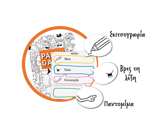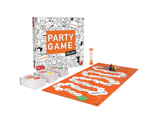 Το Party Game είναι ένα διασκεδαστικό επιτραπέζιο που συνδυάζει 3 κλασικά παιχνίδια: Σκιτσογραφίες Παντομίμα Βρες τη λέξη. Κάθε παίκτης καλείται να ζωγραφίσει, να περιγράψει ή να υποδυθεί με παντομίμα διάφορες λέξεις και φράσεις, με σκοπό να τις μαντέψουν οι συμπαίκτες του! Μπορείς να περιγράψεις τη λέξη τηλεπαρουσιαστής, χωρίς να πεις τις λέξεις τηλεόραση και παρουσιαστής; Μπορείς να δείξεις με παντομίμα τη λέξη ομπρέλα; Ζωγράφισε έναν κόκορα, θα καταλάβουν οι συμπαίκτες σου τι είναι; 2 έως 4 ομάδες ανταγωνίζονται σε ένα δημιουργικό παιχνίδι ενάντια στο χρόνο!