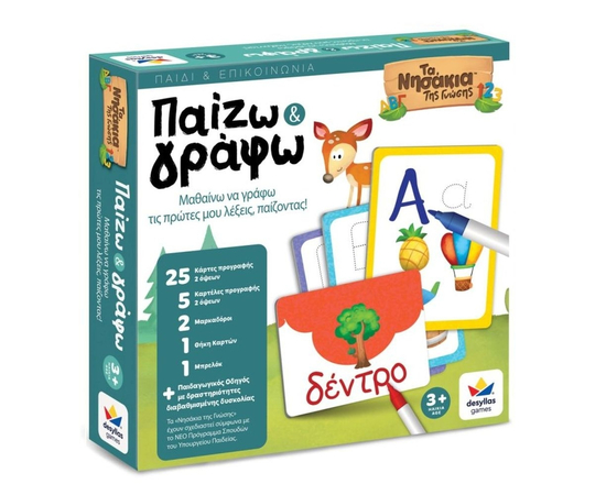 Το Επιτραπέζιο Παιχνίδι Τα Νησάκια της Γνώσης: Παίζω και Γράφω – Δεσύλλας (100696) είναι ένα εκπαιδευτικό παιχνίδι που βοηθά τα παιδιά να αναπτύξουν τις πρώτες δεξιότητες γραφής μέσα από το παιχνίδι. Με δραστηριότητες που ενθαρρύνουν τη σωστή κίνηση του χεριού, την αναγνώριση γραμμάτων και τη γραφή, προσφέρει μια ευχάριστη και δημιουργική μαθησιακή εμπειρία.
