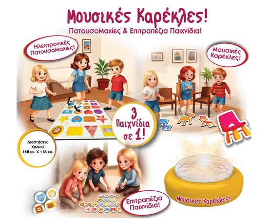 2 παιχνίδια σε 1: Μουσικές Καρέκλες & Κουτσό