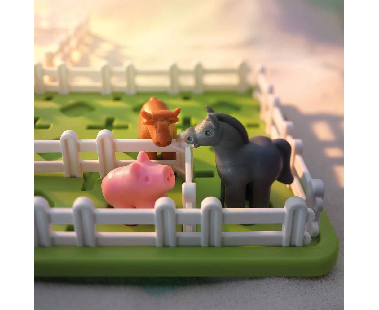 Προβλήματα στη φάρμα! Τα ζωάκια έχουν προκαλέσει μεγάλο χαμό μεταξύ τους και πρέπει να διαχωριστούν. Το πρόβλημα είναι ότι ο αγρότης έχει μόνο τρεις φράκτες για να χωρίσει το κάθε είδος. Μπορείτε να τον βοηθήσετε να διαχωρίσει τα άλογα, τα γουρούνια, τις αγελάδες και τα πρόβατα, έτσι ώστε το κάθε ένα να είναι με το είδος του αλλά και να έχουν όλα διαθέσιμο νερό για να πιούν; Με τη βοήθεια του παιχνιδιού αναπτύσσεται η λογική σκέψη, η στρατηγική και η οπτική και χωρική αντίληψη. Είναι κατάλληλο για παιδιά 5 ετών και άνω και περιέχει 60 επίπεδα κλιμακωτής δυσκολίας και ένα βιβλιαράκι οδηγιών. Παιχνίδι για έναν παίκτη.