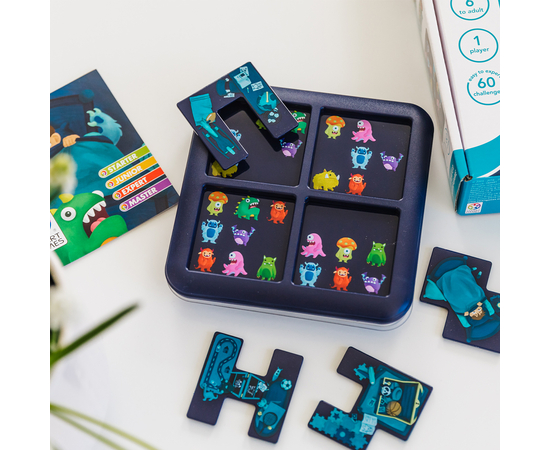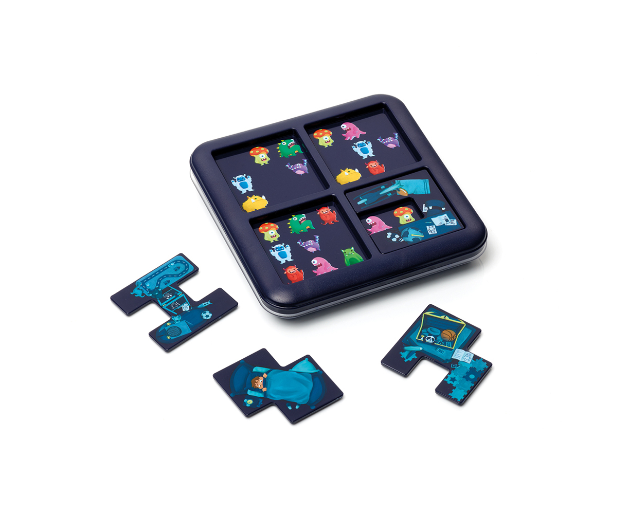 Eπιτραπέζιο παιχνίδι ενός παίκτη από την εταιρεία Smart Games. Υπάρχουν τερατάκια που κρύβονται κάτω από το κρεβάτι; Χρησιμοποιήστε τα 4 κομμάτια του παζλ για να καλύψετε όλα τα τέρατα, εκτός από αυτό που εμφανίζεται κάθε φορά στη δοκιμασία. Μόνο μία λύση είναι δυνατή. To παιχνίδι περιλαμβάνει βιβλιαράκι με 60 διαφορετικές δοκιμασίες κλιμακούμενης δυσκολίας. Ένας διασκεδαστικός τρόπος για την ανάπτυξη της λογικής σκέψης, της χωροταξικής δεξιότητας και της επίλυσης προβλημάτων! Κατάλληλο για ηλικίες άνω των 6 ετών.