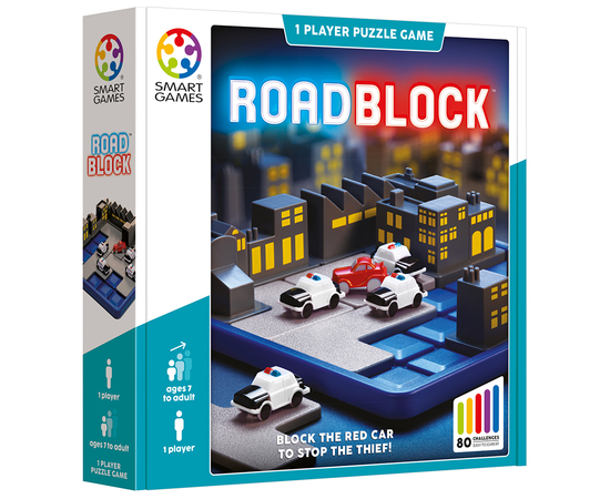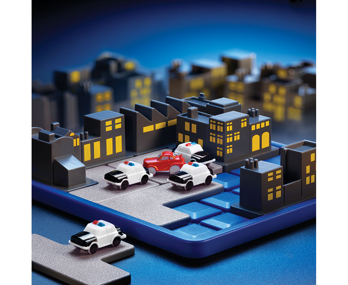 Το κυνηγητό ξεκίνησε: μπλόκαρε όλες τις πορείες εξόδου και μην αφήσεις τον κλέφτη να ξεφύγει! Το παιχνίδι περιλαμβάνει 1 ταμπλό, 4 κομμάτια παζλ με κτίρια, 6 κομμάτια παζλ με περιπολικά, 1 κομμάτι παζλ με κόκκινο αυτοκινητάκι, 1 σπιράλ βιβλιαράκι με 60 προκλήσεις και οδηγίες παιχνιδιού. Νιώσε όπως στις αστυνομικές καταδιώξεις στις ταινίες! Η εταιρία Smartgames παρουσιάζει μια σειρά από παιχνίδια λογικής και ενδυνάμωσης IQ και με αυτό το παιχνίδι αναπτύσσεται η λογικο-μαθηματική σκέψη, η στρατηγική και η οπτική και χωρική αντίληψη. Κατάλληλο για ηλικίες από 7 ετών και άνω. Παίκτες: 1+