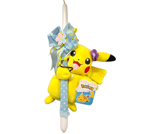 Το λούτρινο Pikachu ύψους περίπου 20 εκ. κρατά ένα όμορφο μωβ λουλούδι, προσθέτοντας μια χαριτωμένη και ανοιξιάτικη πινελιά στη λαμπάδα. Είναι μαλακό και ιδανικό για αγκαλιές, ενώ μετά την Ανάσταση μπορεί να χρησιμοποιηθεί ως παιχνίδι ή διακοσμητικό στο παιδικό δωμάτιο.