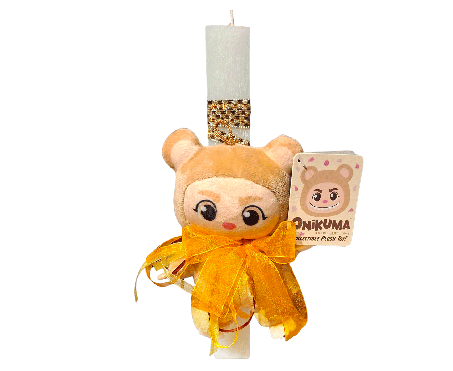 Η λαμπάδα είναι χειροποίητη και αρωματική, ενώ το λούτρινο Onikuma ύψους περίπου 18 εκ. είναι μαλακό και ιδανικό για αγκαλιές και παιχνίδι. Η προσεγμένη πασχαλινή διακόσμηση δημιουργεί ένα όμορφο δώρο που συνδυάζει την παράδοση της Ανάστασης με ένα γλυκό λούτρινο παιχνίδι.