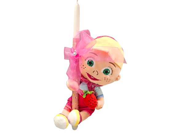 Πασχαλινή Λαμπάδα Χειροποίητη Μάσα με Φραουλίτσα "Masha and the Bear Λούτρινο 26cm
