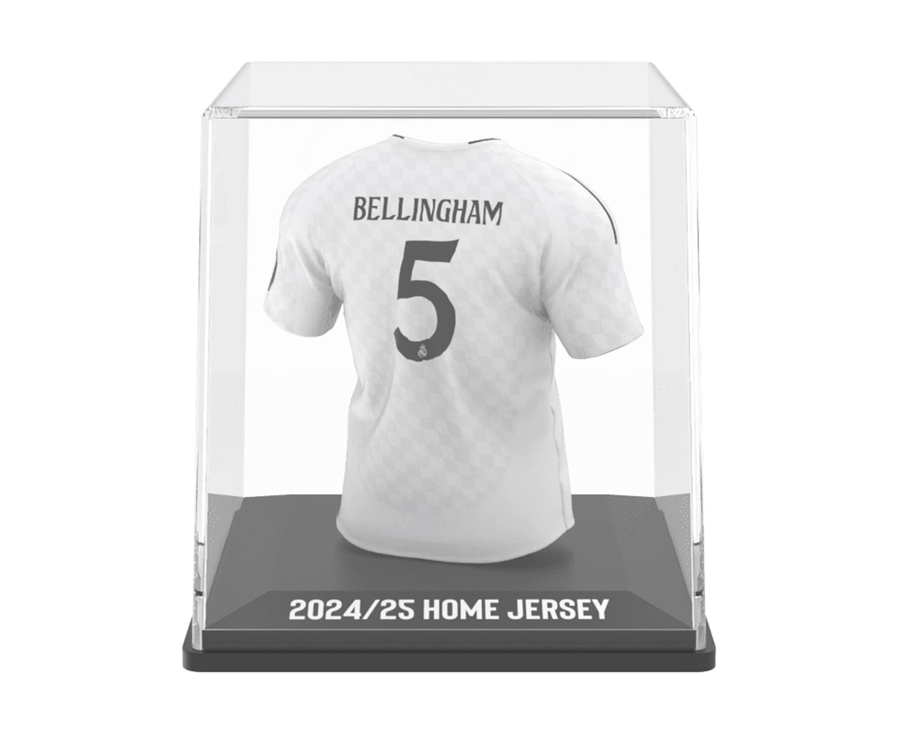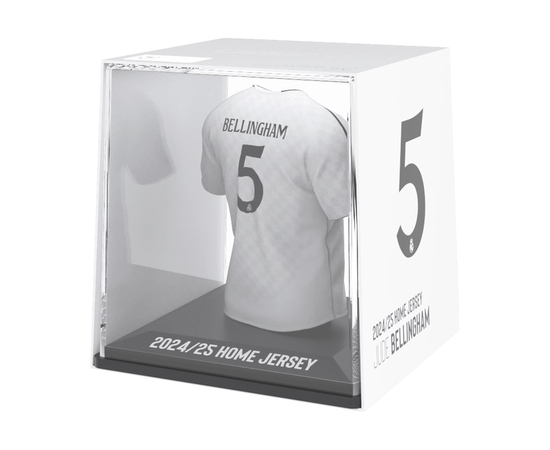 Το MyJersey Real Madrid Home 24/25 – Bellingham από τη σειρά FanCollex είναι ένα συλλεκτικό mini jersey υψηλής ποιότητας, εμπνευσμένο από τη φανέλα του Jude Bellingham με τη φανέλα εντός έδρας της σεζόν 2024/25.