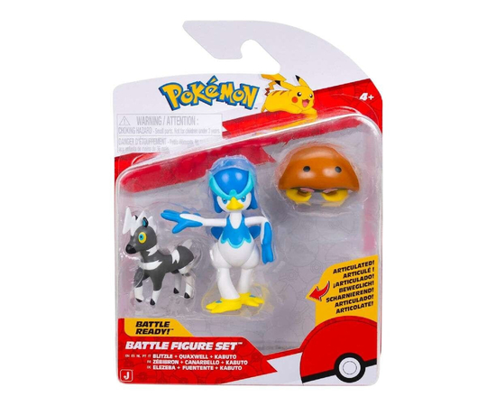 Σετ φιγούρων μάχης Pokémon που περιλαμβάνει τρεις φιγούρες των χαρακτήρων Blitzle, Kabuto και Quaxwell για παιχνίδι δράσης, φαντασίας και συλλογή.