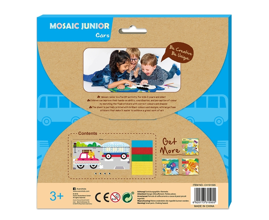 Το Avenir Μωσαϊκό Junior Cars είναι ένα χαρούμενο και δημιουργικό σετ μωσαϊκού, ιδανικό για παιδιά από 3 ετών!