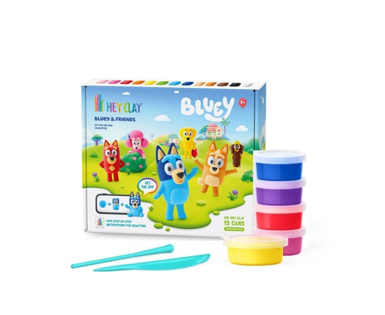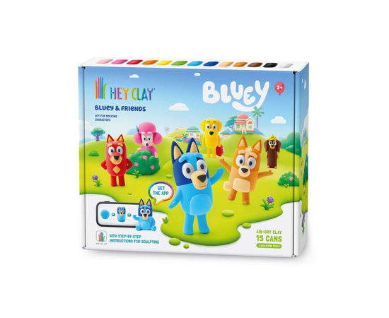 Με αυτό το δημιουργικό σετ, οι μικροί καλλιτέχνες μπορούν να πλάσουν τη Bluey, την Bingo και τους φίλους τους, χρησιμοποιώντας πολύχρωμο πηλό που στεγνώνει στον αέρα, χωρίς ανάγκη ψησίματος.