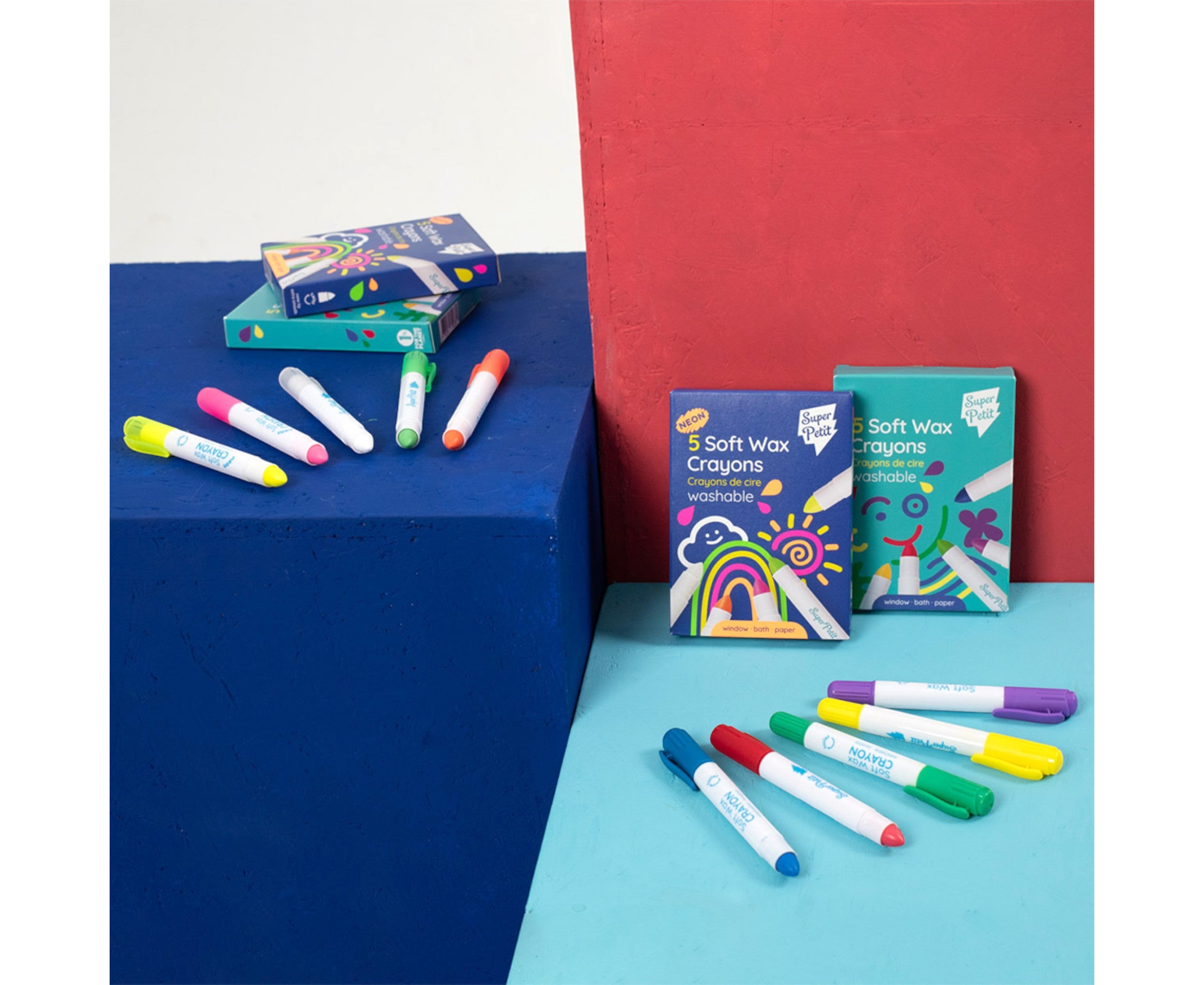 Super Petit - Σετ 5 κηρομπογιές πολλαπλών επιφανειών neon