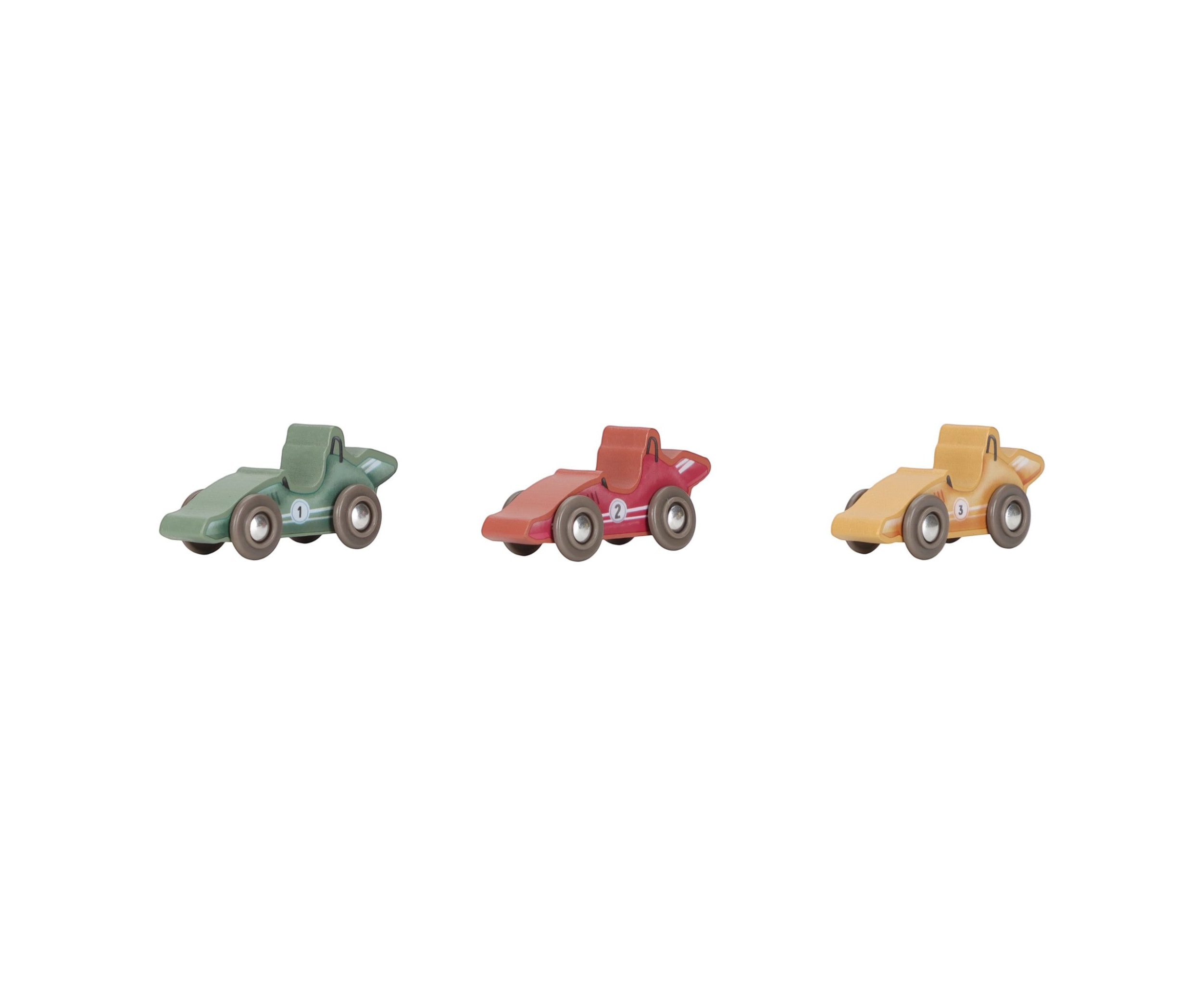 Το σετ περιλαμβάνει αυτοκινητάκια, οδηγούς, γραμμή τερματισμού, πινακίδες κυκλοφορίας, κύπελλο και βάθρο νικητών, δηλαδή, όλα όσα χρειάζεσαι για μια συναρπαστική αγωνιστική εμπειρία.