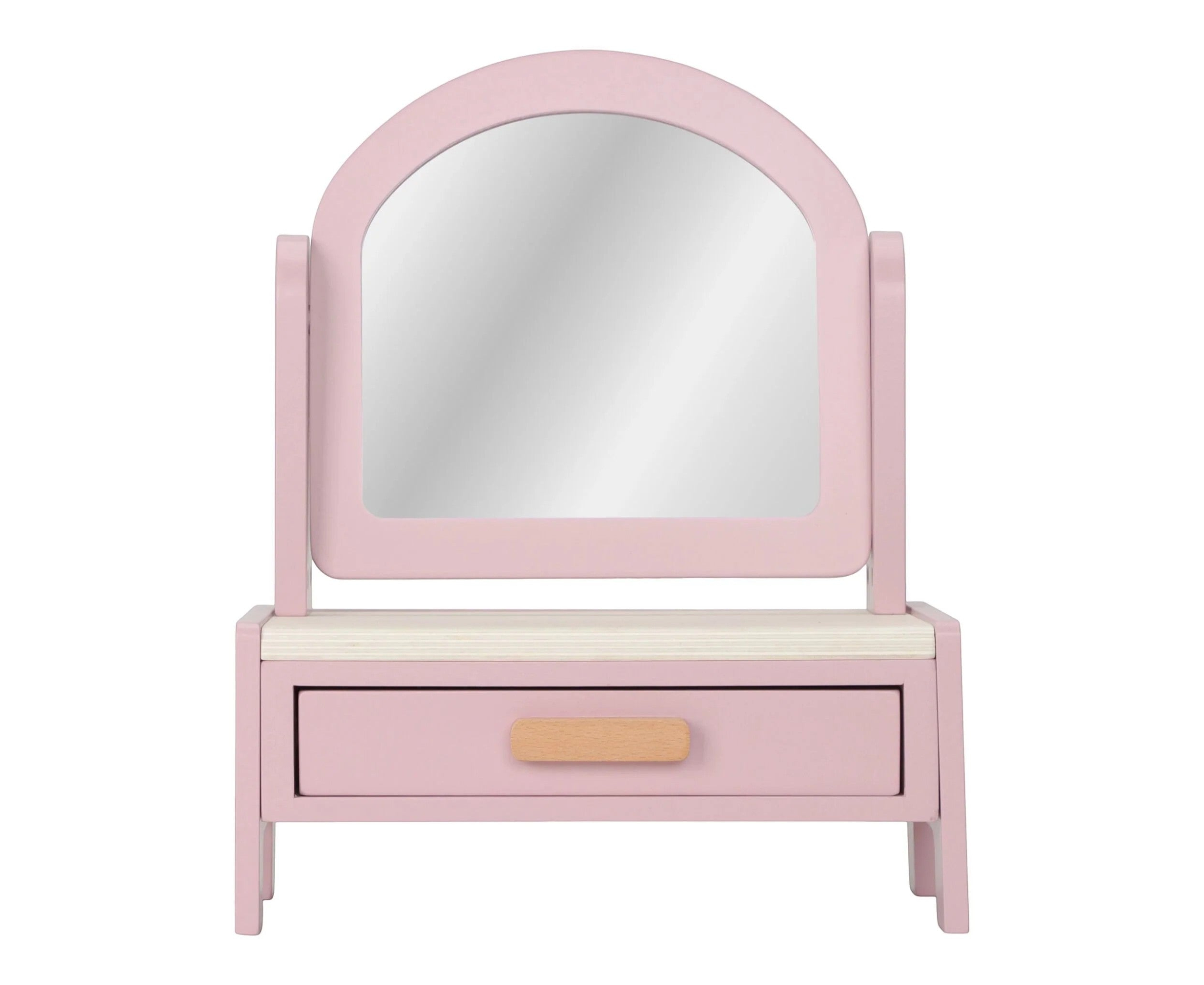 Αυτό το υπέροχο ξύλινο boudoir διαθέτει περιστρεφόμενο καθρέφτη και περιλαμβάνει έξι χαριτωμένα αξεσουάρ ομορφιάς, όπως βούρτσα μαλλιών, κραγιόν και άρωμα.