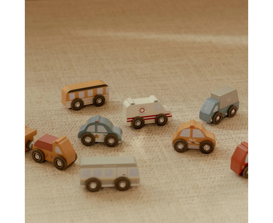 - Περιλαμβάνει 9 ξύλινα οχήματα.