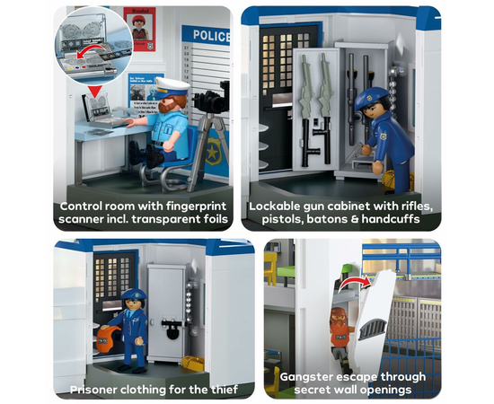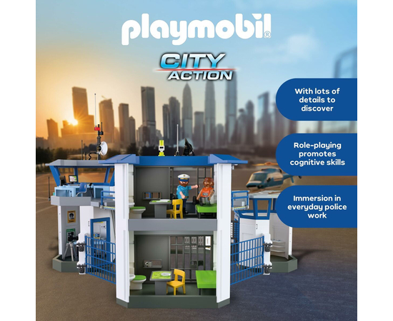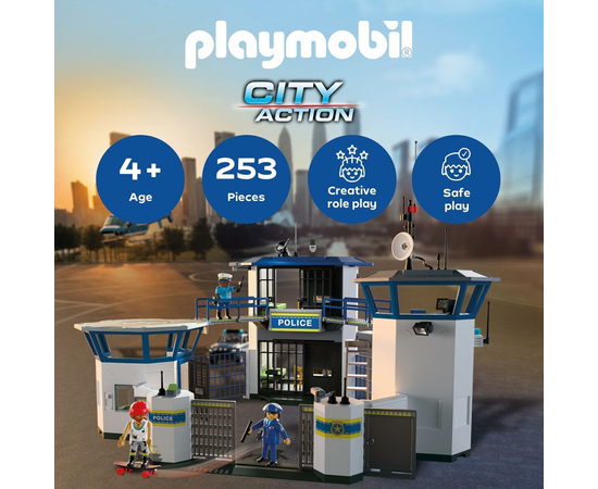 Το Playmobil City Action – Αρχηγείο Αστυνομίας (71873) είναι ένα μεγάλο, πλήρως εξοπλισμένο αστυνομικό κέντρο επιχειρήσεων. Με κρατητήριο, αίθουσα ελέγχου, εξοπλισμό παρακολούθησης, αστυνομικούς και κακοποιούς, προσφέρει ατελείωτες σκηνές δράσης και παιχνίδι ρόλων.