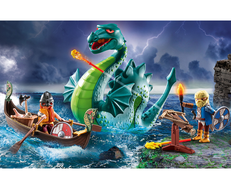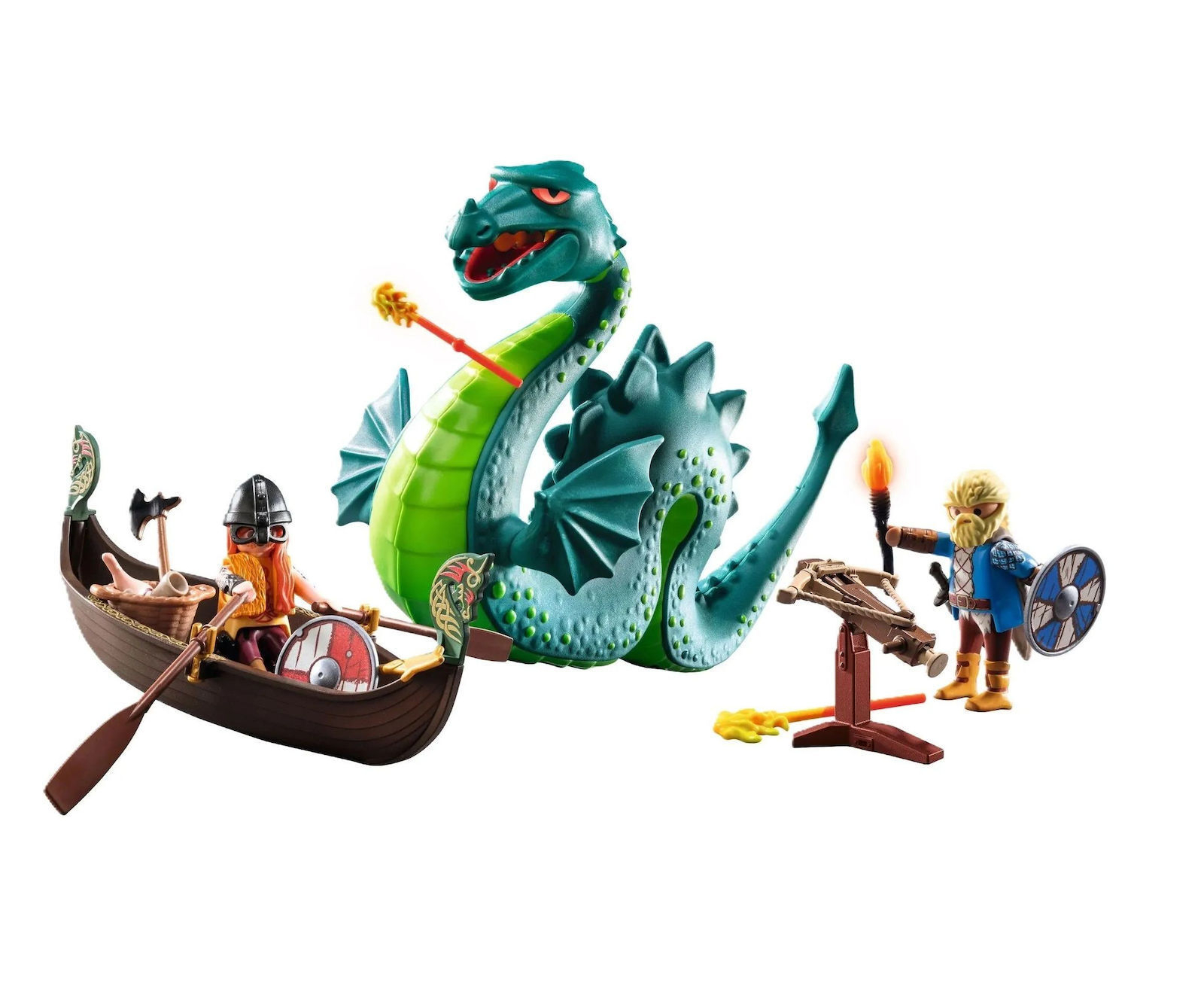 Το Playmobil – Πολεμιστές Βίκινγκς και Θαλάσσιο Τέρας (71830) προσφέρει μια συναρπαστική σκηνή μάχης στη σκανδιναβική μυθολογία. Με δύο Βίκινγκς, βάρκα, όπλα και ένα εντυπωσιακό θαλάσσιο τέρας με κινούμενα μέρη, τα παιδιά μπορούν να δημιουργήσουν επικές περιπέτειες και μάχες στο κύμα.