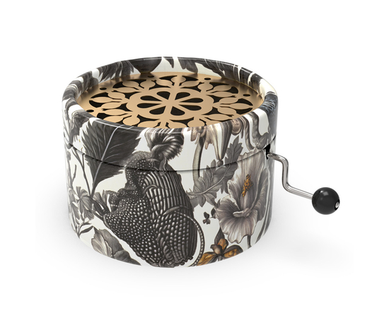 Ένα χάρτινο κουτί αντήχησης με πρωτότυπα διακοσμητικά καιμια ανοιχτή ροζέτα από χαρτόνι στο καπάκι εμπλουτίζει ο ήχος του μουσικού μηχανισμού στο Rondo. Το Rondo προστατεύεται από ένα άτομο συσκευασία που απλοποιεί το ελκυστικό ράφι εμφανίζει και το κάνει μια ακαταμάχητη ιδέα δώρου.