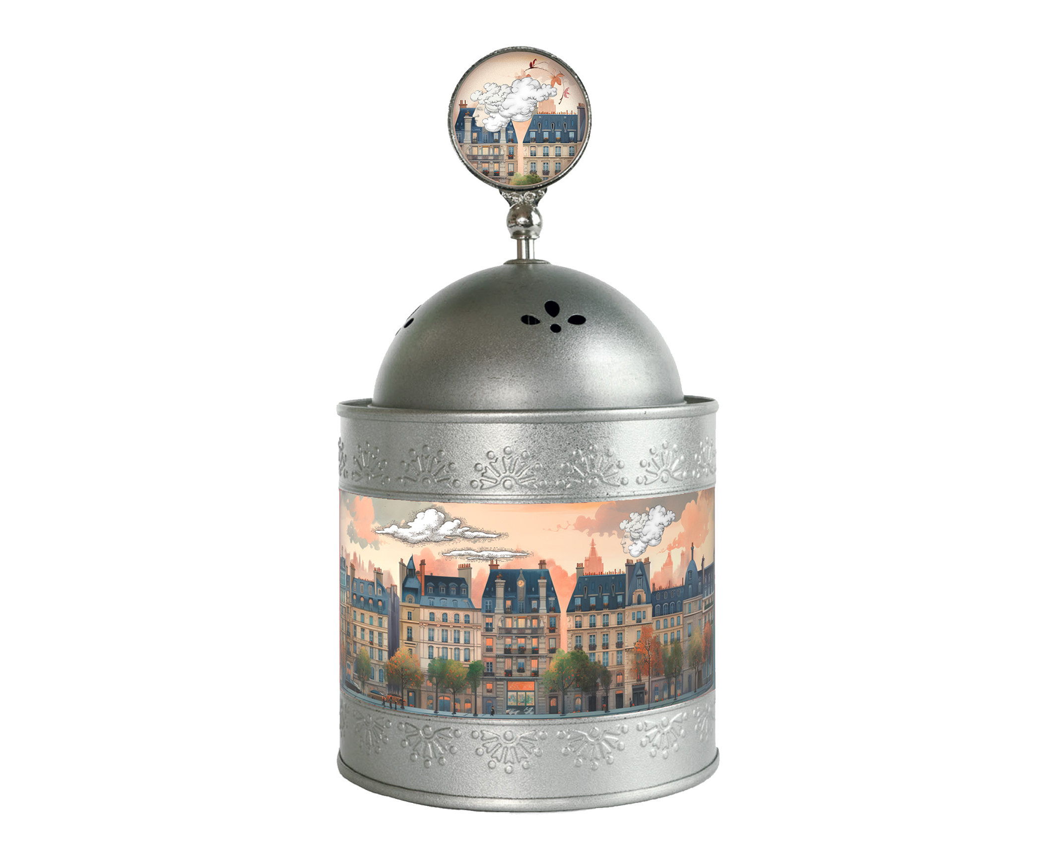 Μεταλλικό Μουσικό Κουτί Belle Lurette με Καπάκι και Μηχανισμό με Κουρδιστό Μεταλλικό Κλειδί La Vie En Rose Buildings 9.2 cm × 17.5 cm SB10