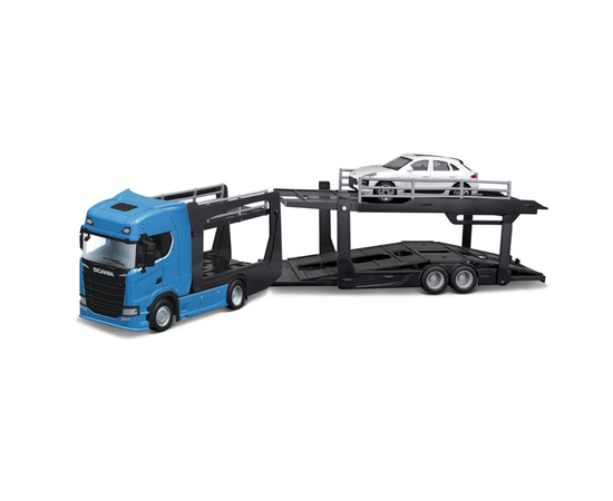 Bburago Μεταλλικό Φορτηγό Μεταφοράς Αυτοκινήτων Scania 770S με Aυτοκίνητο Porsche Macan 1/43