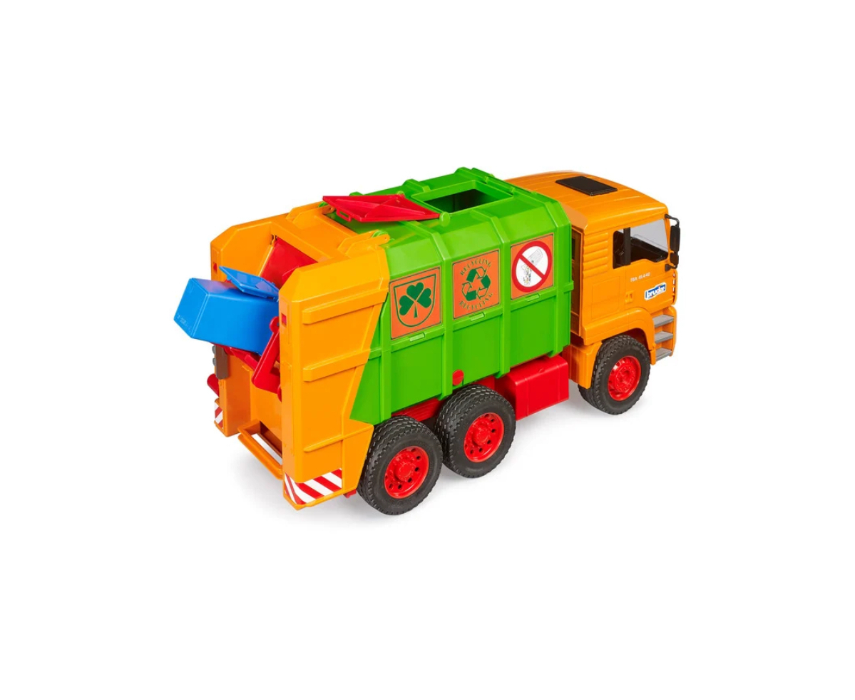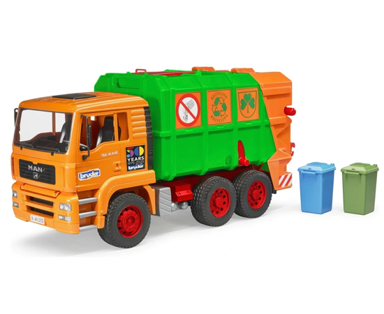 Το Bruder Επετειακό Απορριμματοφόρο MAN TGA (001051) είναι ένα υψηλής ποιότητας ρεαλιστικό όχημα κατασκευασμένο σε κλίμακα 1:16, με πλήρως λειτουργικές δυνατότητες. Διαθέτει σύστημα φόρτωσης και εκκένωσης κάδων, ανυψωτικό μηχανισμό και ανθεκτική κατασκευή, ιδανική για ατελείωτο παιχνίδι ρόλων.