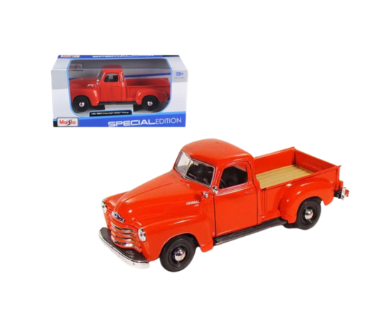 Η Maisto Special Edition παρουσιάζει το εμβληματικό Chevrolet 3100 Pickup του 1950 σε κλίμακα 1/24, ένα από τα πιο αναγνωρίσιμα κλασικά pick-up της αμερικανικής αυτοκινητοβιομηχανίας. Με ρεαλιστικές λεπτομέρειες, ανοιγόμενα μέρη και ποιοτική μεταλλική κατασκευή, αυτό το μοντέλο αποτελεί must για κάθε συλλέκτη vintage αυτοκινήτων.
