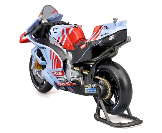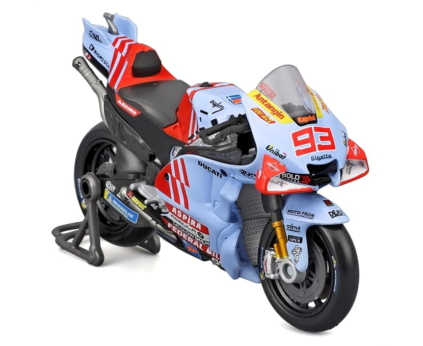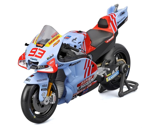 Ο Marc Márquez, ένας από τους πιο επιτυχημένους αναβάτες στην ιστορία του MotoGP, αγωνίζεται με το νούμερο 93 και είναι γνωστός για το επιθετικό του στυλ και τις εντυπωσιακές του νίκες. Το μοντέλο αποτυπώνει με λεπτομέρεια τη GP23, μια από τις πιο εξελιγμένες αγωνιστικές μοτοσυκλέτες της Ducati.