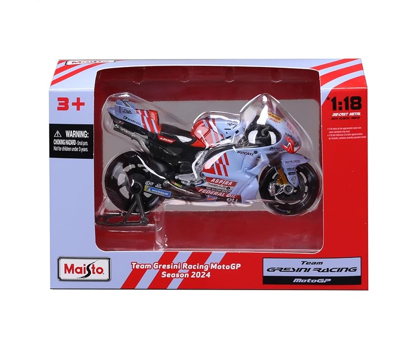 Κατασκευασμένο από τη Maisto, το μοντέλο σε κλίμακα 1:18 διαθέτει ρεαλιστικό σχεδιασμό και ποιοτική κατασκευή, ιδανικό για συλλέκτες και fans των αγώνων MotoGP.