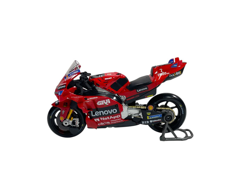 Η Maisto MotorCycle Ducati Desmosedici GP24 MotoGP Team Ducati Lenovo Team – #1 – 1:18 είναι ένα εντυπωσιακό συλλεκτικό μοντέλο εμπνευσμένο από τη σύγχρονη αγωνιστική μοτοσυκλέτα Ducati Desmosedici GP24 της εργοστασιακής ομάδας Ducati Lenovo Team στο πρωτάθλημα MotoGP.