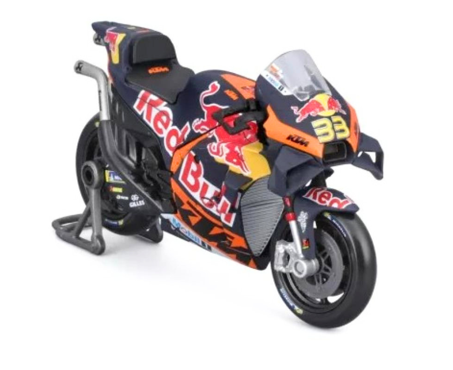 Ο Brad Binder, με το νούμερο #33, είναι γνωστός για το επιθετικό του στυλ και τις δυναμικές εμφανίσεις του στην πίστα, αποτελώντας βασικό αναβάτη της KTM. Το μοντέλο αποτυπώνει με ακρίβεια τα αγωνιστικά γραφικά Red Bull και τη χαρακτηριστική σχεδίαση της RC16.