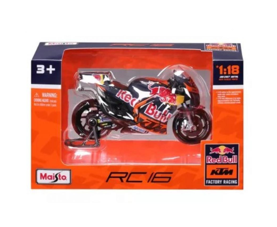 Η Maisto MotorCycle KTM RC16 MotoGP "Red Bull KTM Factory Racing" – Brad Binder #33 – 1:18 είναι ένα εντυπωσιακό συλλεκτικό μοντέλο εμπνευσμένο από την αγωνιστική μοτοσυκλέτα KTM RC16 της ομάδας Red Bull KTM Factory Racing στο πρωτάθλημα MotoGP.