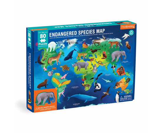 Με το παζλ γεωγραφίας Είδη υπό Εξαφάνιση της Mudpuppy, τα παιδιά μπορούν να μάθουν για τα διάφορα ζώα σε όλο τον κόσμο που απειλούνται με εξαφάνιση.