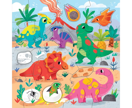 Με 25 μεγάλα κομμάτια, εκ των οποίων 6 είναι ειδικά σχεδιασμένα σε σχήμα αγαπημένων δεινοσαύρων, αυτό το παζλ είναι ιδανικό για μικρά χεράκια που λατρεύουν την περιπέτεια.