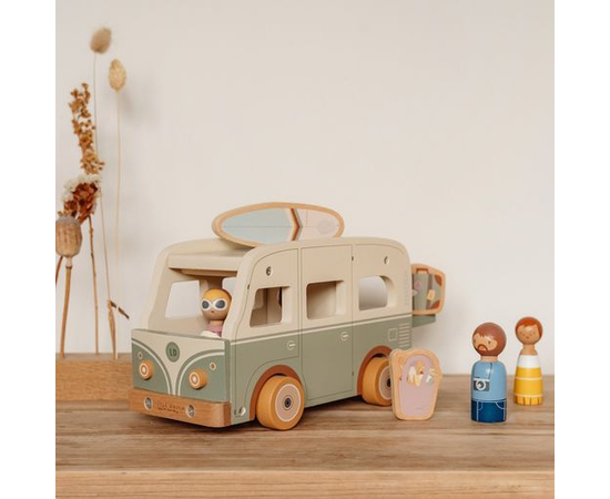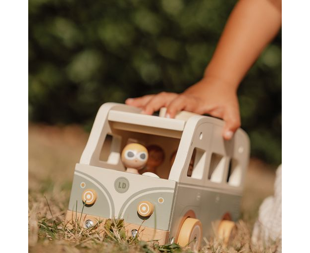 Αυτό το όμορφο ξύλινο παιχνίδι από τη Little Dutch περιλαμβάνει ένα βανάκι με αφαιρούμενη οροφή, 4 κούκλες και 3 αποσκευές - έτοιμο για ατελείωτες ώρες παιχνιδιού και διασκέδασης.